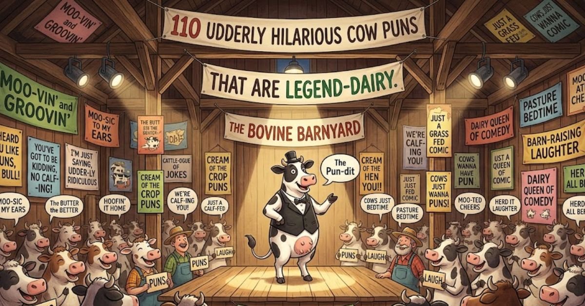 Whether you’re hunting for a punny caption, a birthday card one-liner, or just want to be the funniest person at dinner, this article has 110 of the best cow puns, organized into categories. No filler. No bull. Just pure bovine comedy gold.